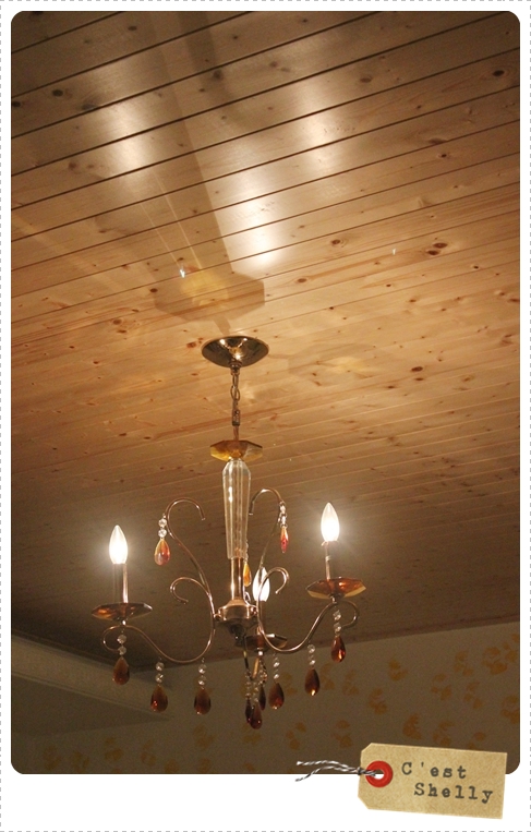 天花板是木頭材質,還有美美的復古水晶燈