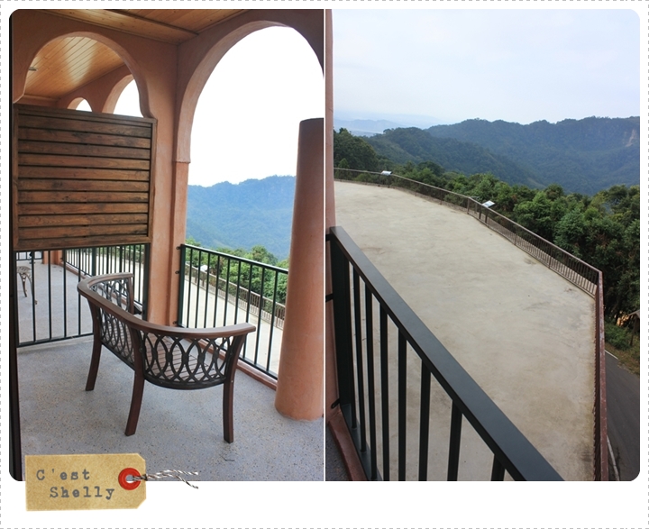 窗簾拉開後走出去就是一個可以鳥瞰山景的陽台